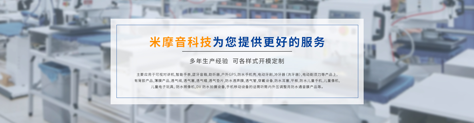 深圳市米摩音科技有限公司專業生產(加工定制):IP54-IP66-IP67-IPX7-IPX8,防水膜,防水透音膜,防水通聲膜,防水透音膜,防水透聲膜,防水透氣膜,防水平衡孔泄壓膜,防水平衡泄壓膜,7級防水泄壓膜,調音泄壓孔透氣膜,主要應用于可視對講機,智能手表,藍牙音箱,助聽器,戶外GPS,防水手機殼,電動牙刷,沖牙器(洗牙器),電動剃須刀等產品上,有背膠產品,薄膜產品,透氣閥,透氣塞,透氣帽,透氣墊片,防水透聲膜,透氣管,穿戴設備,防水耳塞,平板,防水兒童手機,兒童像機,兒童電子玩具, 防水照像機,DV 防水拍攝設備,手機移動設備的話筒聽筒內外壓調整用防水通音膜產品等。